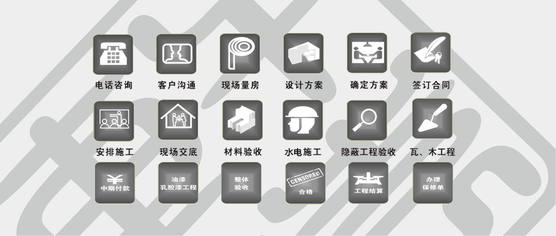 嚴格按照ISO9001-2008質(zhì)量標準管理,嚴格選擇國家GB50210環(huán)保標準材料...